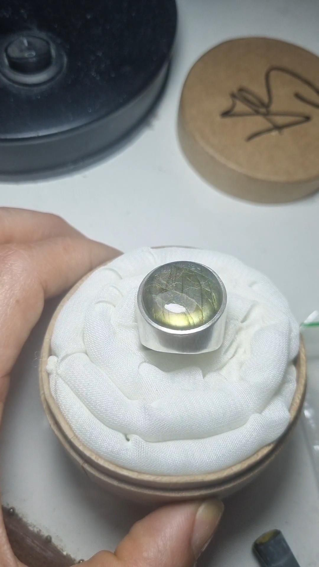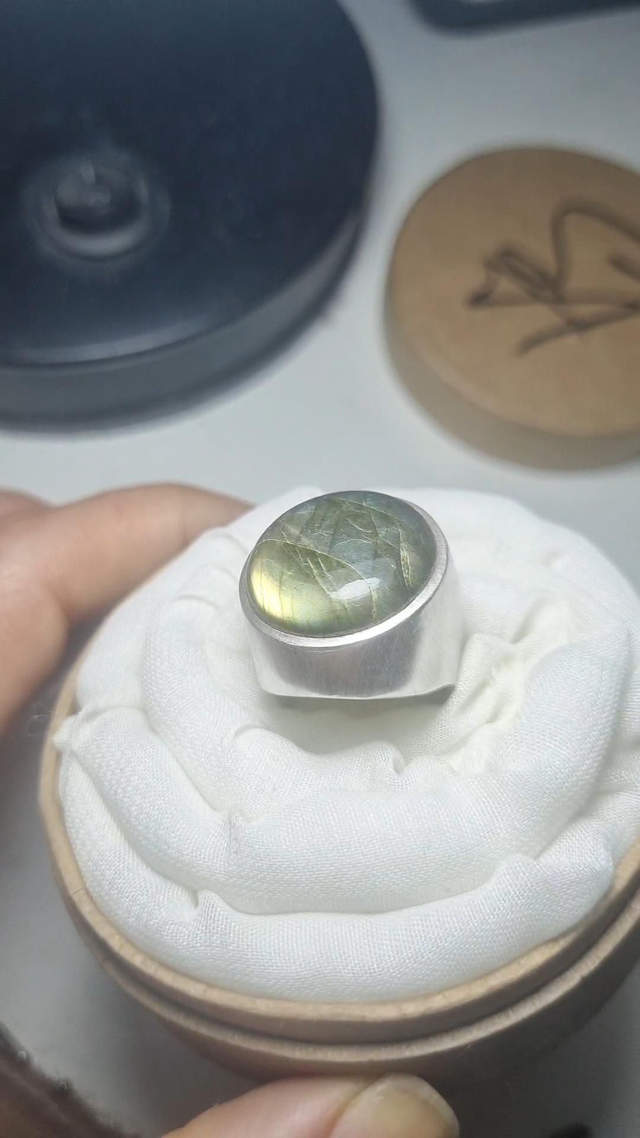 Anel único Chevalier, autenticado com marca de punção Sulamita Araújo, Feito com chapas maciças 0.80 e pedra preciosa de labradorita.