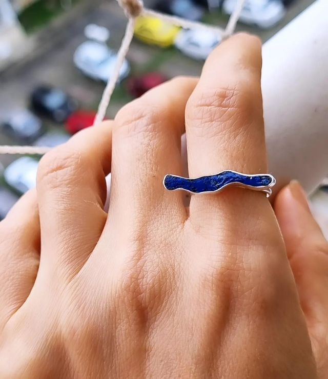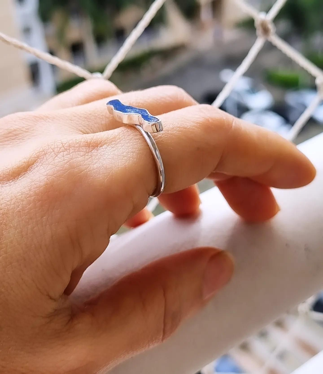 Anel Maré em prata maciça 950 e Ágata azul.