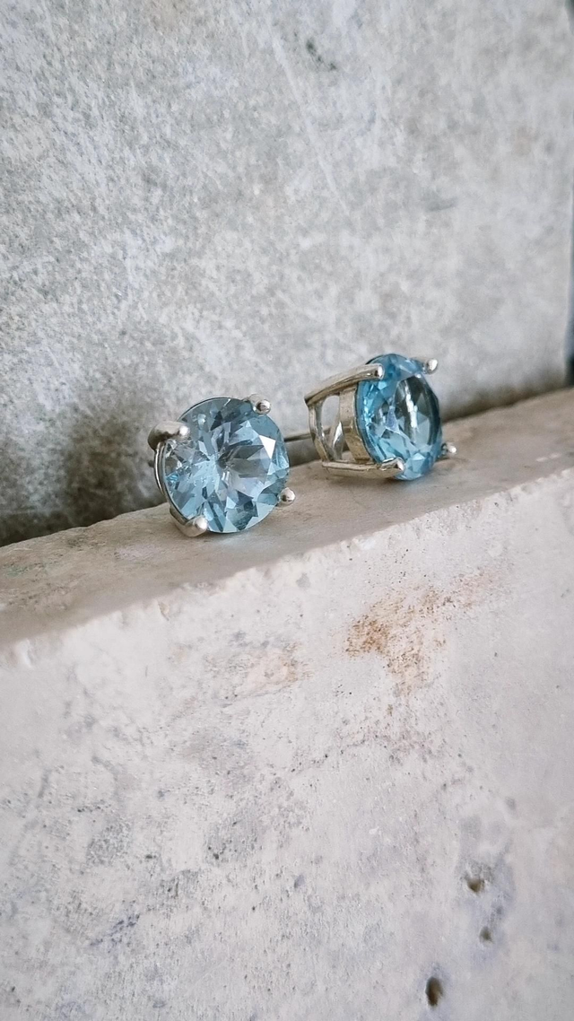 Brinco em prata e pedras preciosas de Topázio Blue Sky 10mm. Todas as jóias são feitas a mão seguindo a essência da designer.