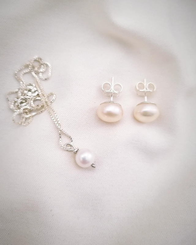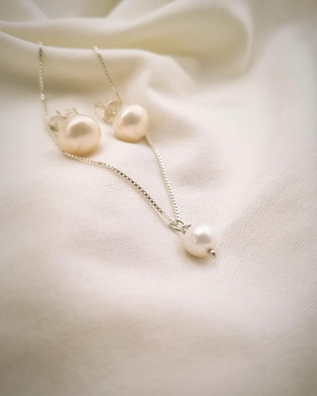 Brinco em Prata e Pérola 9~10 mm.
