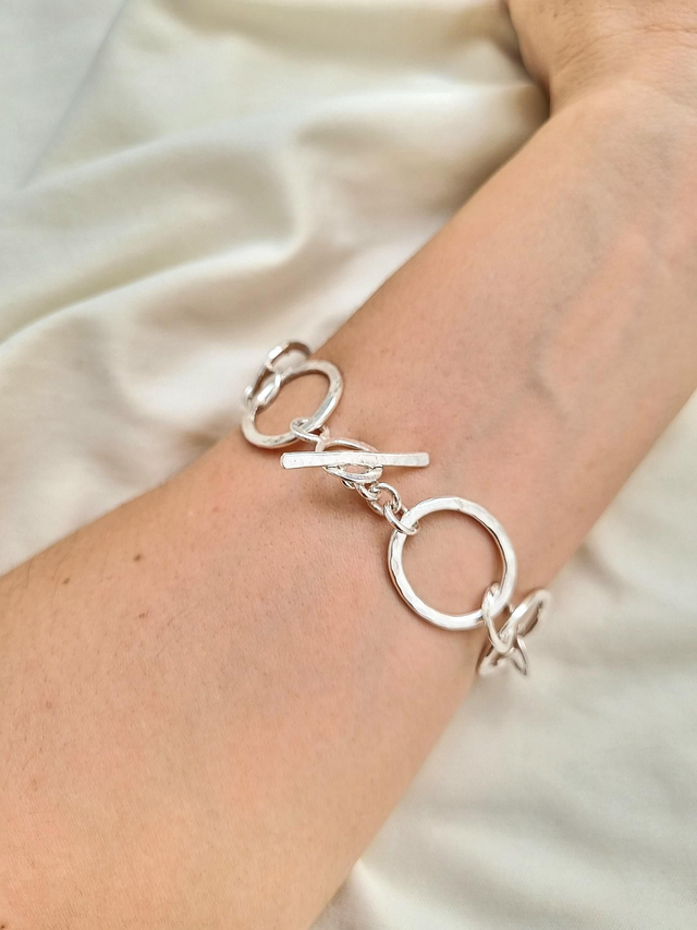 Feita inteiramente à mão, ela foi esculpida utilizando apenas prata maciça 950. Cada detalhe de sua superfície foi cuidadosamente moldado com um martelo exclusivo para metais, conferindo textura, brilho e uma autenticidade única.